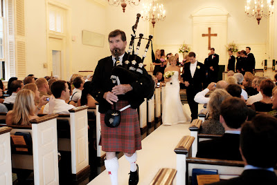 Normally, I only post photos that I took on my blog, however, this shot that Karen grabbed on their way back up the aisle with the bagpiper is great. I had to give it props here!